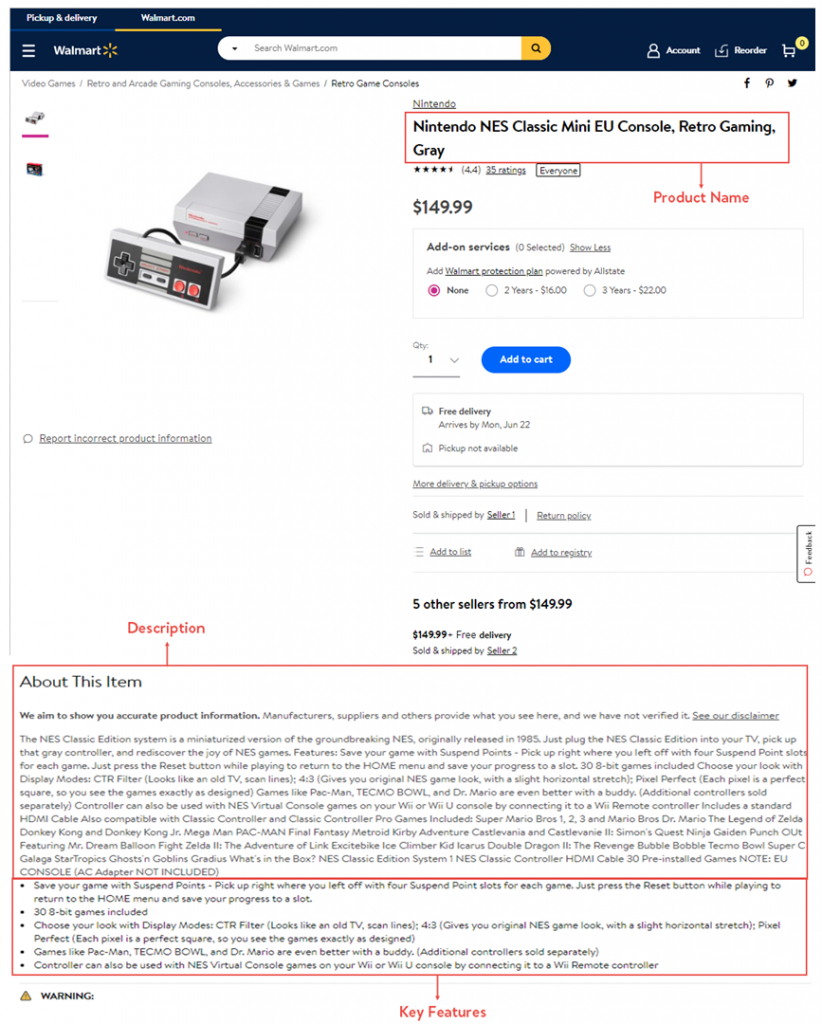 - Retailer-specific information about the product